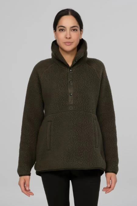 The super-cozy, Polartec sherpa fleece of the Pecora will keep you toasty warm when cuddled up next to the bonfire. This mid-weight fleece wicks moisture when you get stuffy, and the deep snap front placket allows you to vent heat without shedding a layer.