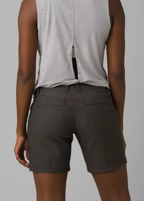 The prAna Alana Short for women is made from ReZion, a bluesign®-approved fabric designed with a recycled nylon stretch blend. Design features for this cross-functional short include UPF 50+, moisture-wicking properties, a fully functional center front snap closure with interior drawstring, front and back welt pockets with an invisible zipper at the back right welt and upper right leg, a mid rise, and a classic standard fit.