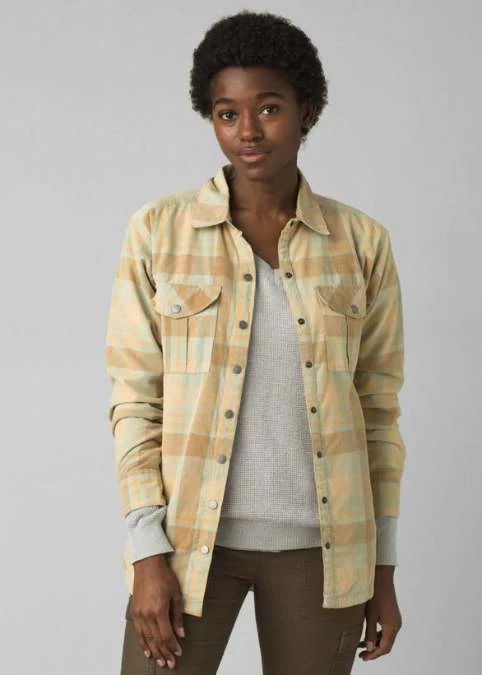 The Finnegan Top for women is sustainably made from 100% organic cotton. Design features for this long-sleeved style include 4 snap-closure pockets, a jersey lining, center snap closures, a yard dye plaid fabric, and a relaxed fit.