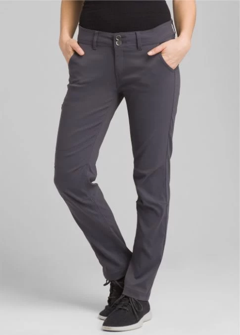 The Halle Pants rock all the benefits of prAna’s rugged Stretch ‘Zion’ fabric, now in a straight leg fit. These trousers sport abrasion resistance that stands up to brushes with granite or tree branches, a durable water repellent finish that keeps you dry when an unforeseen squall moves in, and quick-dry stretch performance fabric that leaves you free to scamper for shelter. The Halle has an everyday look, but added functional features like articulated knees, a hidden stash pocket, and a roll-up leg prove they’re still bona-fide adventure pants.