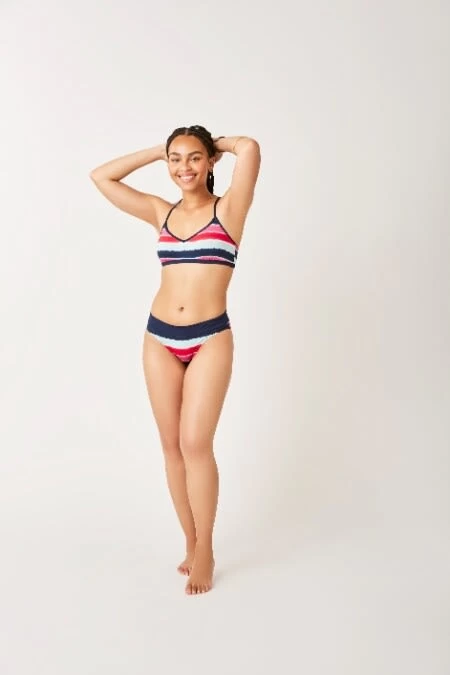 A stylish color-blocked waistband paired with full rear coverage make the Stinson Bottom a beach day fan-favorite.