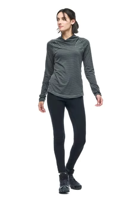 Moisture-wicking and quick-drying thermal fabric with odor-reducing properties for maximum comfort. Can be worn as a baselayer to stay dry or a standalone top in cool conditions. Works great as a yoga top for your warmup and cool-down.