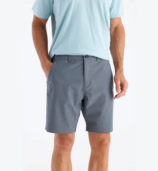 The Free Fly Tradewind Short has a sophistocated, casual look with some travel-optimized technical features. A water-resistant finish helps repel stains and light precipitation, and a polyester, cotton, and spandex blend brings a light, airy feel to your travels.